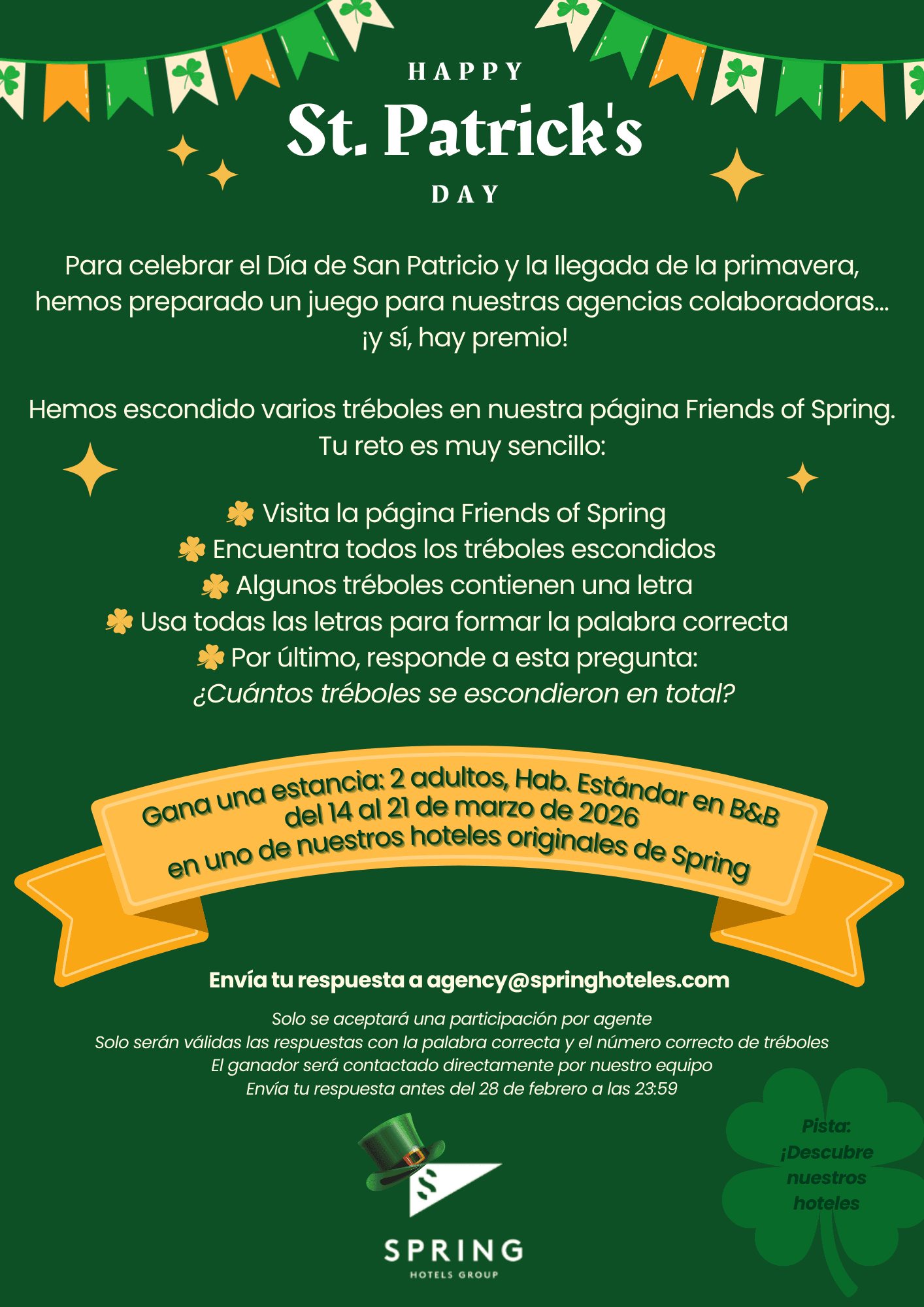 Envía tu respuesta a: agency@springhoteles.com