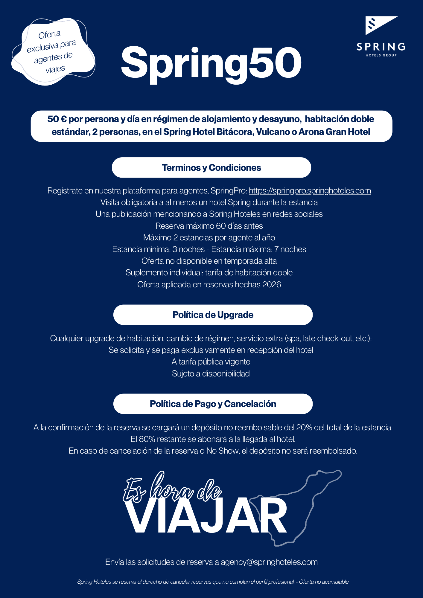 Tarifas para agentes / 🌟 SPRING50 – Oferta exclusiva para Agentes de Viaje